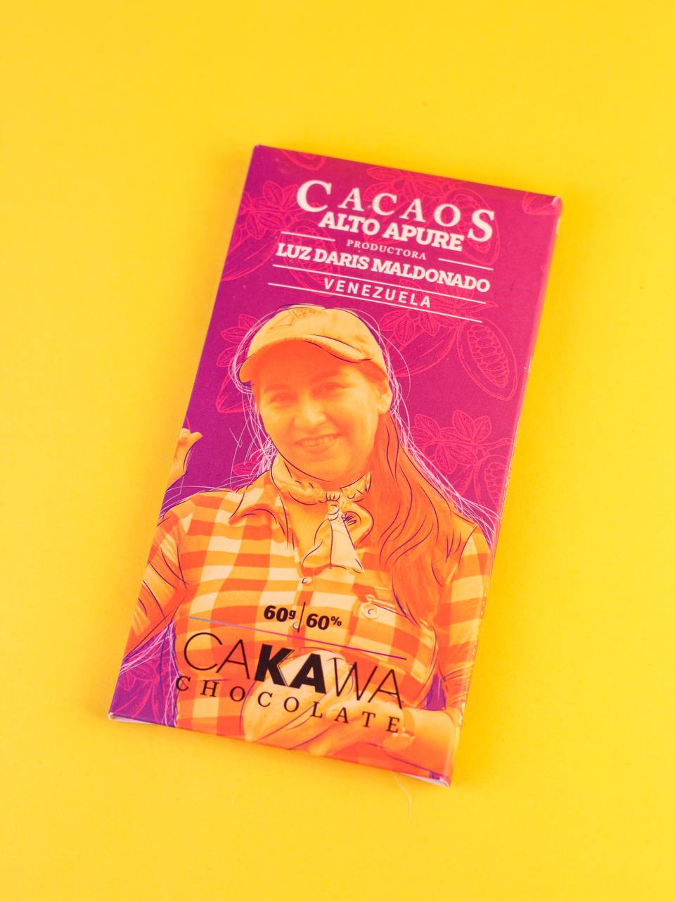 Tabletas de chocolate oscuro de 60gr, elaboradas con cacaos de origen del Alto Apure (Venezuela) de 4 productoras diferentes