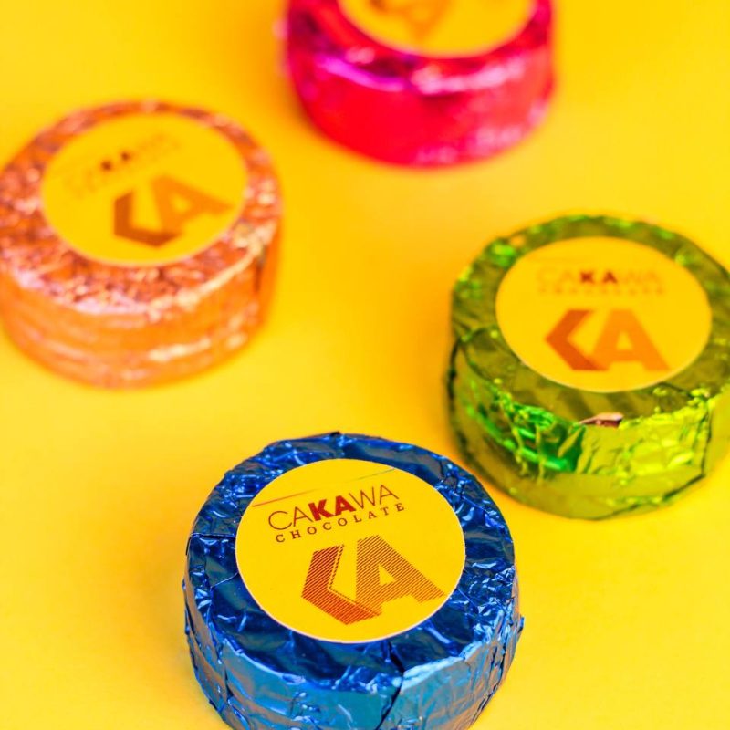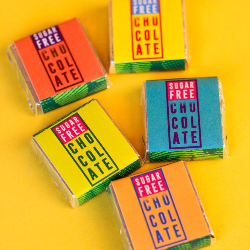 Tabletas de chocolate oscuro de 12gr con empaques intervenidos con refranes venezolanos